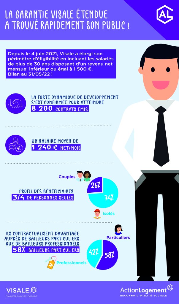 Depuis le 4 juin 2021, Visale a élargi son périmètre d’éligibilité en incluant les salariés de plus de 30 ans disposant d’un revenu net mensuel inférieur ou égal à 1500 €. Pour cette dernière évolution, ce sont plus de 8 000 nouveaux salariés qui ont été logés en l’espace d’un an. La tendance observée laisse présager de nombreux nouveaux salariés de ce public qui seront accompagnés par Visale en 2022 !